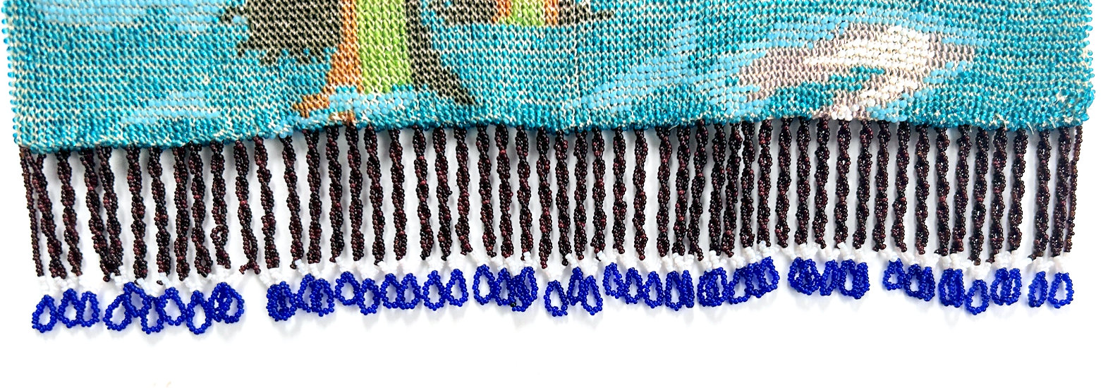 This is a stunning figural beaded purse and one of the finest I've ever seen. The beads are so tiny they defy counting ... look like tiny pin spots of color! This is an exceptionally large purse ... the size is 8" wide at the frame and almost 13" long to bottom of fringe. This is one of those purses that leaves tiny areas unbeaded to give contrast and dimension ... this can be seen in the enlarged close-up ... look closely at the girl's skirt. This is not bead loss but rather a method of knitting the purse to deliberately give it depth of design. The colors are all vivid and bright and I can't say enough about it. Look at the intricately twisted fringe that picks up colors from the purse ... just gorgeous! Pictures speak for themselves on this one ... Previously listed at $3,995. (Click on pic for more photos.) |
