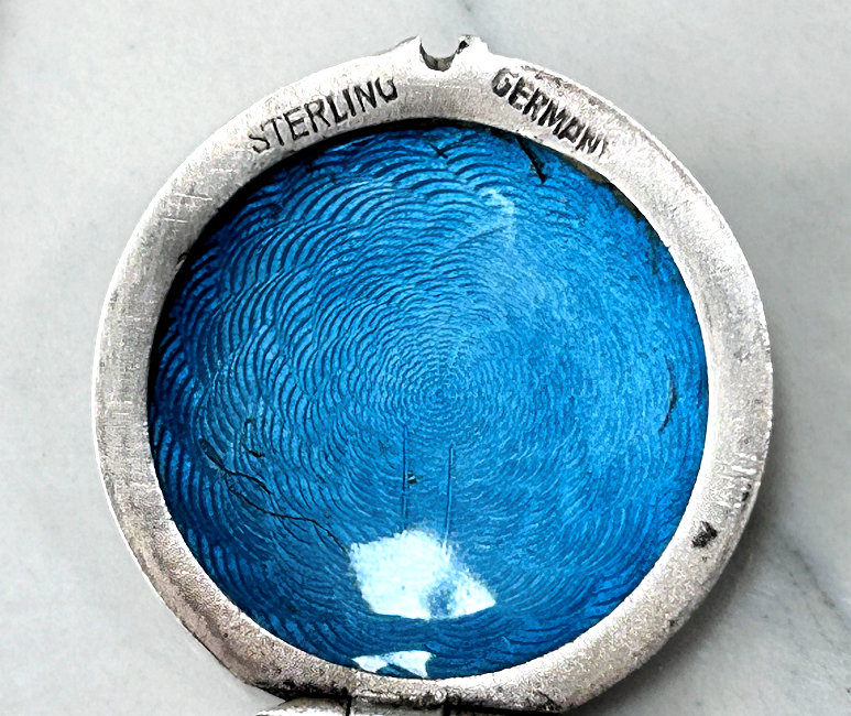 Beautiful Sterling Silver Hand-Painted Enamel Guilloche Locket Made in Germany