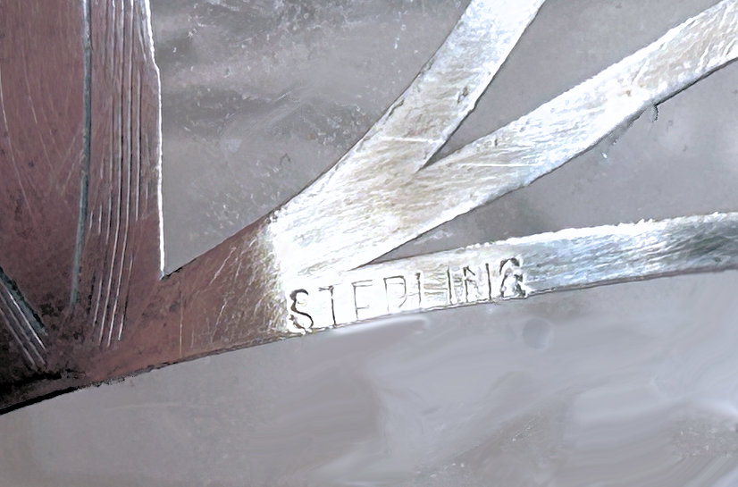 This adorable diminutive little perfume bottle will make the sweetest addition to your vanity! It is exquisitely etched with delicate flowers around the crystal bottle with a flanged base. The stopper is sterling silver with a soft radiant baby blue enamel guilloche top. The metal dauber is in excellent condition as is the entire bottle. There is one tiny spot of perfume on the inside that I have not tried to remove ... will leave that up to you. The cap is marked "STERLING" and a hallmark that I cannot identify.* This tiny little perfume measures only 1-1/4" high. The base is 7/8" diameter and the cap is about 3/8" diameter. It is a little jewel for sure! *According to Tom from Marks4Antiques, "Because it is so partially visible and practically indistinguishable, my best guess is for the French "crab" assay hallmark. This symbol was used by assayers in non-metropolitan areas of France to confirm the purity of silver. It was rather generic and many items bearing this symbol usually did not have a maker's mark since most were made for others as parts to a larger piece (as in this case). Also, the French are renowned for their glass & crystal production, so this theory makes sense. The only other possibility, in my opinion, is that it was made in Austria. In either case, the safest way to attribute the origin of this item is to call it 'Continental European'. I would date it to around 1890s - 1920s." (Click on pic for more photos.) |