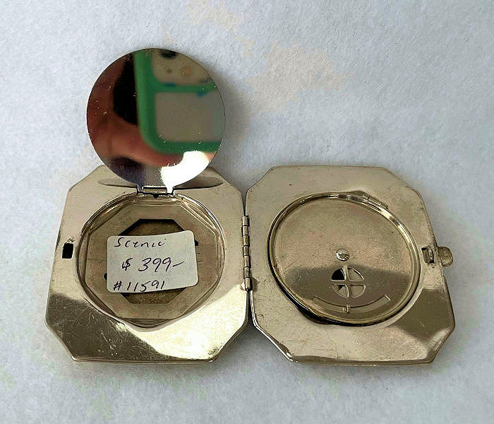 Shipping and handling included within Continental U.S. Disclaimer: When referring to "jewels" or "gemstones", I am making no guarantees as to whether these are genuine jewels or not. To see photo gallery of all previously SOLD compacts and vanities, click here Enamel Guilloche | Italian Sterling | Miscellaneous | Novelty | Tango | Vanities