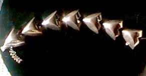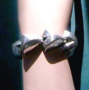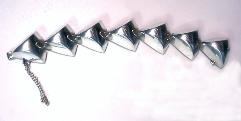 Lovely sterling silver bracelet signed "Monet" (inside the little hook clasp). 3-dimensional arrowhead-shaped links join to form this simple yet elegant bracelet. Measures 6-1/2" long x 1" wide. (Click on pic for more photos.) |