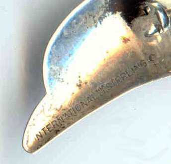 Sterling silver dolphin pin by International Sterling. Measures 2-3/4" long. (Click on pic for more photos.) |