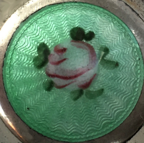 Sterling Silver Hand-Painted Enamel Guilloche Locket with Hand-Painted Rose Made by Birmingham Medal Co.
