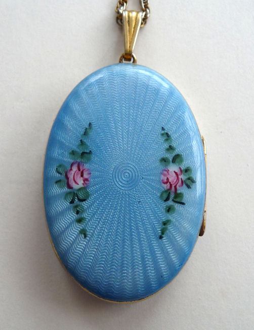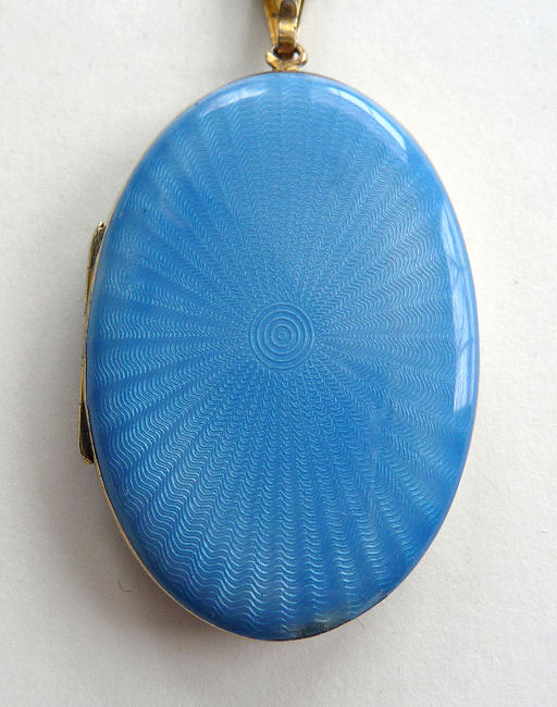 Blue Enamel Guilloche Locket by F & B