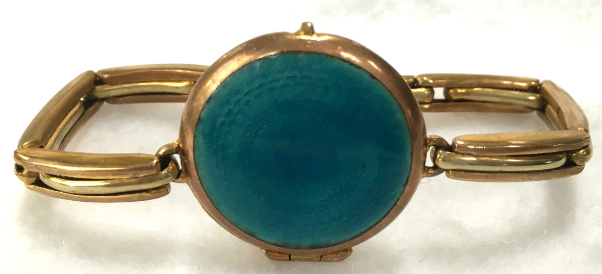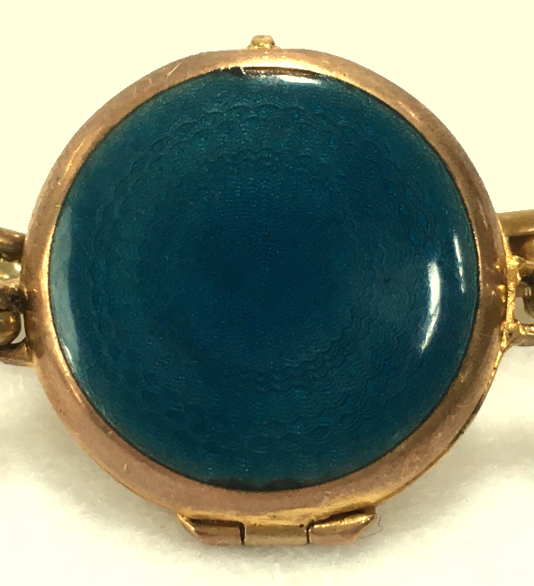 Teal Blue Enamel Guilloche Bracelet Locket