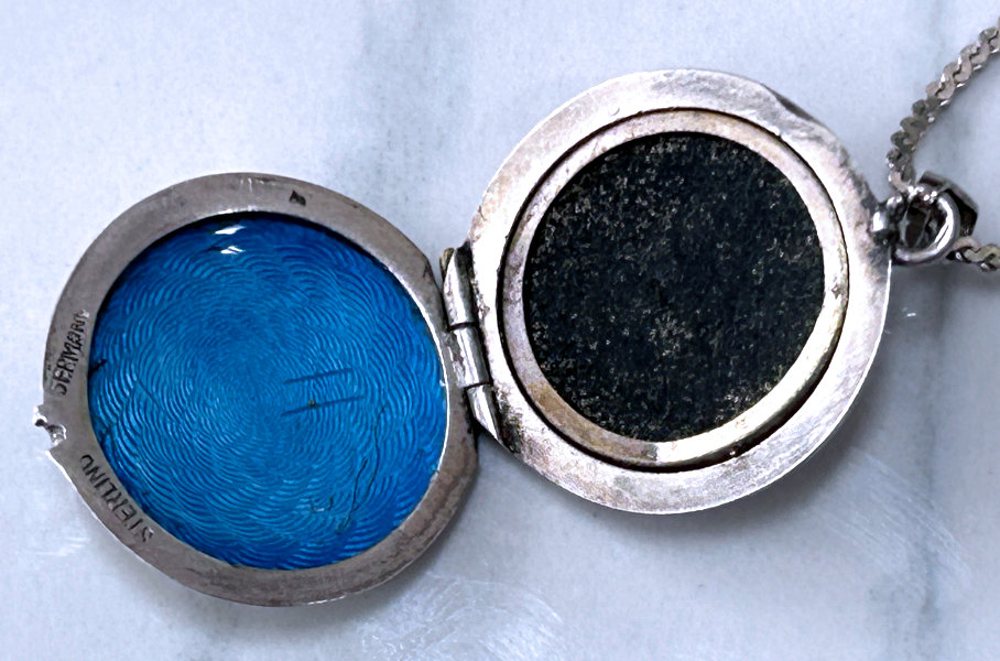 Beautiful Sterling Silver Hand-Painted Enamel Guilloche Locket