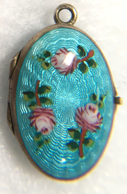 Evans Double Enamel Guilloche Locket with Hand-Painted Roses