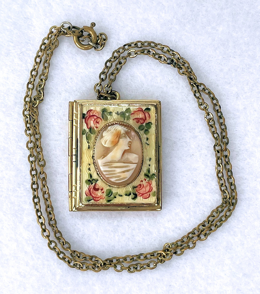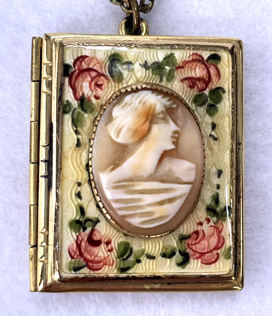 Vintage Cameo Enamel Guilloche Locket with Hand-Painted Roses