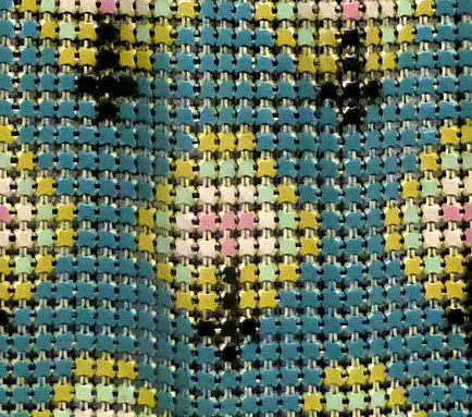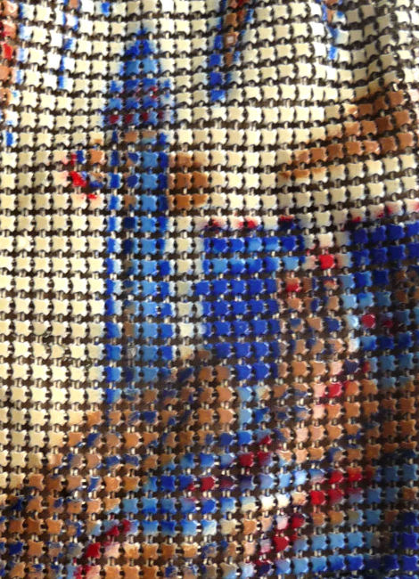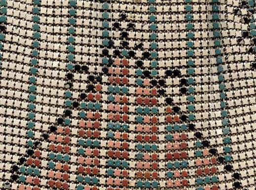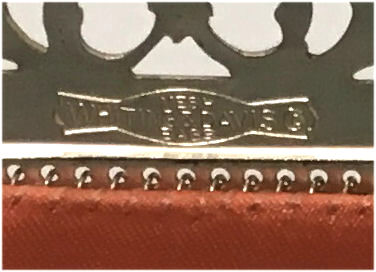 I just love the colors in the rare design Whiting & Davis mesh purse depicting a row of soldiers along the bottom edge. The colors are so vibrant ... cobalt blue, orange, red, green on a cream background. The gold frame is richly embossed with floral designs on both sides. In fact, both sides are identical so there is technically no front or back. Condition overall is very good ... there is a bit of a gap on the one side armpit and there may be some enamel wear to some of the tiles but nothing that is readily noticeable. Has the original Whiting & Davis hang tag inside. Measures 5-1/4" wide at the frame x 7" long. First time offered! (Click on pic for more photos.) |