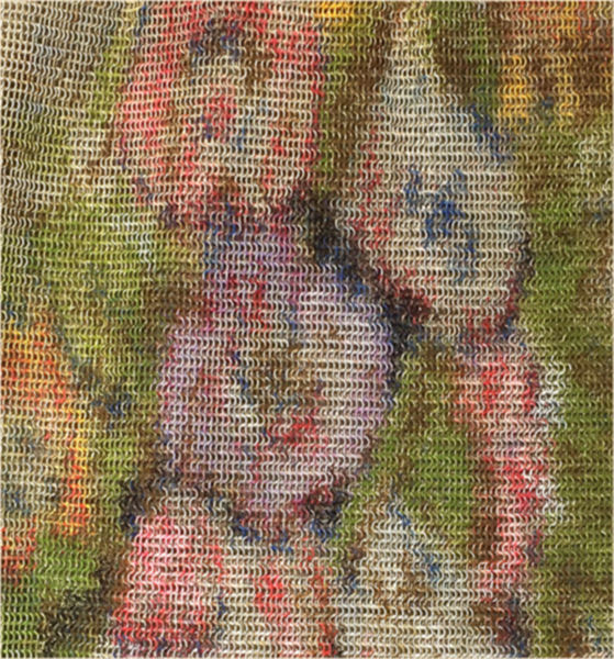 This is a lovely little Dresden baby-mesh purse by Whiting & Davis. The colors are all vivid and excellent, and the frame is an embossed STERLING silver (stamped on inside frame). On one side by the hinge, four links have come loose from the frame but the attachment rings are still there, so this would be an easy repair. The mesh itself is in fantastic condition with no holes or tears. Unusual size, too: measures 4" wide x 4-1/4" long. A nice addition to any collection! Previously listed for $325. (Click on pic for more photos.) |