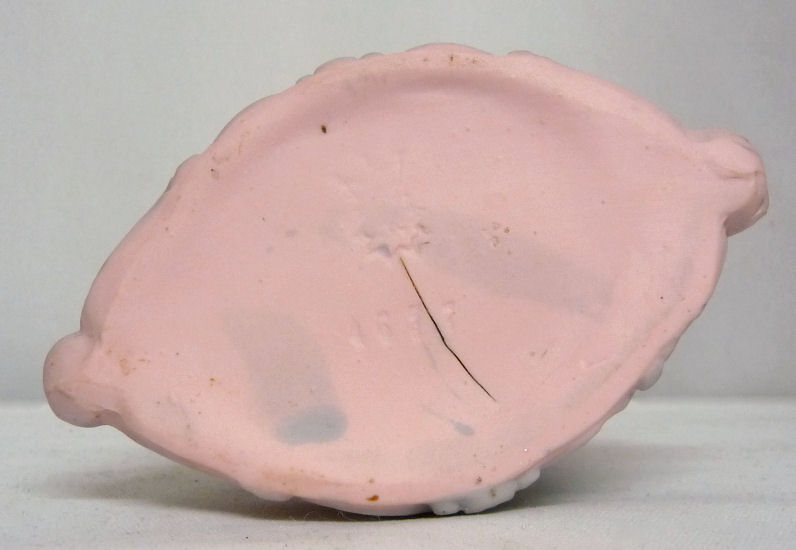 This is a lovely hatpin holder made in Germany by Schafer & Vater circa 1900. The color is a soft pink with a wedgwood blue cameo of a different woman on either side. The blue is also a softer muted shade which gives the entire piece a truly antique feel (which of course it is being over 100 years old!). The top of the piece has 7 holes for hat pins. As for condition, there are two factory flaws which bear mentioning but neither has any impact on its beauty or its functionality. The bottom of the piece has a kiln split which only goes through in one teeny pin hole that you can only see if you put your eye up to one of the holes and hold it up to a bright light. You cannot see through it otherwise and the split does not go through. Also factory is an air bubble miss on the hair of the woman on the back of the holder. Both of these issues are well pictured and will look significantly larger and worse in my photos than they do in person. There is no damage whatsoever to the body of the piece elsewhere. This is a beautiful item and would be a great addition to any hatpin holder collection. Measures almost 4" across at base x 2-1/2" wide at the center front/back x 5" high. Read about Schafer & Vater here. (Click on pic for more photos.) |