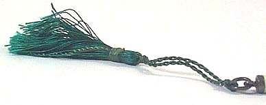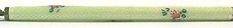 This pretty little enamel guilloche sterling silver mechanical pencil was made in Germany. The body is pale green with tiny pink hand-painted roses placed around it. There is an original old silk tassel hanging from the end. There is still lead in the pencil and the mechanism works fine. Marked "Sterling Germany" on the jump ring. Condition overall is excellent with only one very teeny fleabite at the very edge by the ring that I actually need a loupe to see! Measures 4" long counting jump ring. (Click on pic for more photos.) |