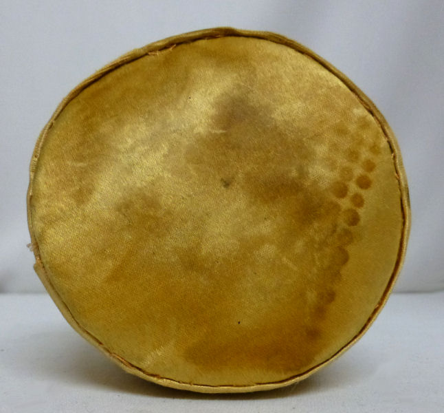 I'm not sure this wasn't originally designed to hold powder puffs around the skirt of the doll, but when we purchased it, the skirt was being used as a holder for sewing accessories which we have left alone. The half-doll is in excellent condition as well as the skirt which could probably use a steaming to hang properly. Again, I prefer to leave this alone and allow the next owner to do as they see fit. Everything on the doll is original ... please see all photos for condition. Measures 7-1/2" tall overall x 5" diameter; doll itself is 2-1/4" tall. NOTE: All of the pincushion/dresser half dolls came from a local estate here in the Pittsburgh area that we purchased back in 2006. I am finally relinquishing them! :-) (Click on pic for more photos.) |