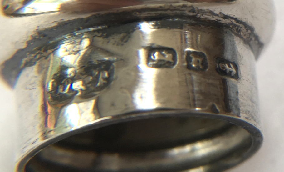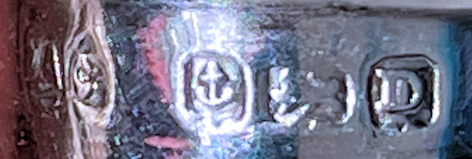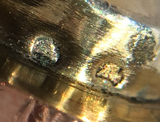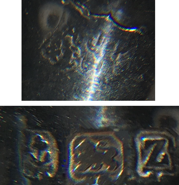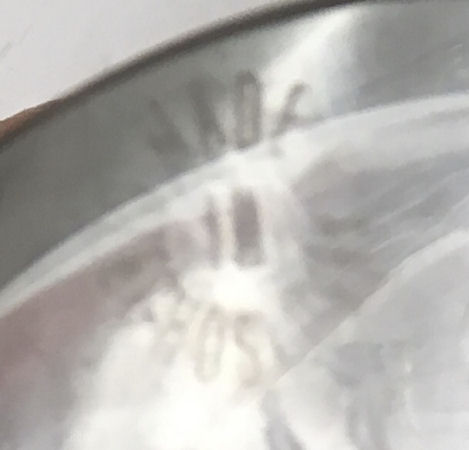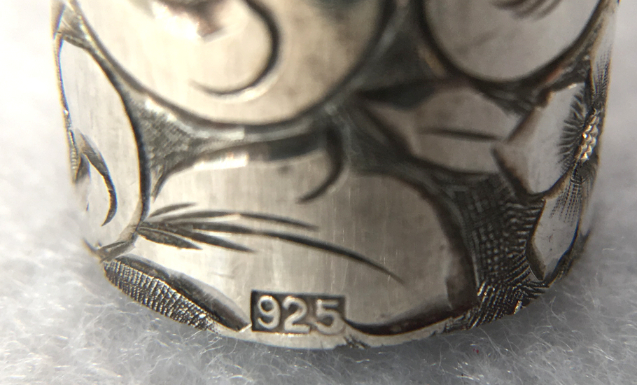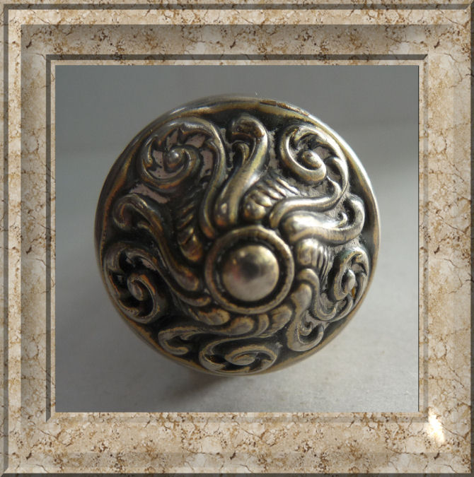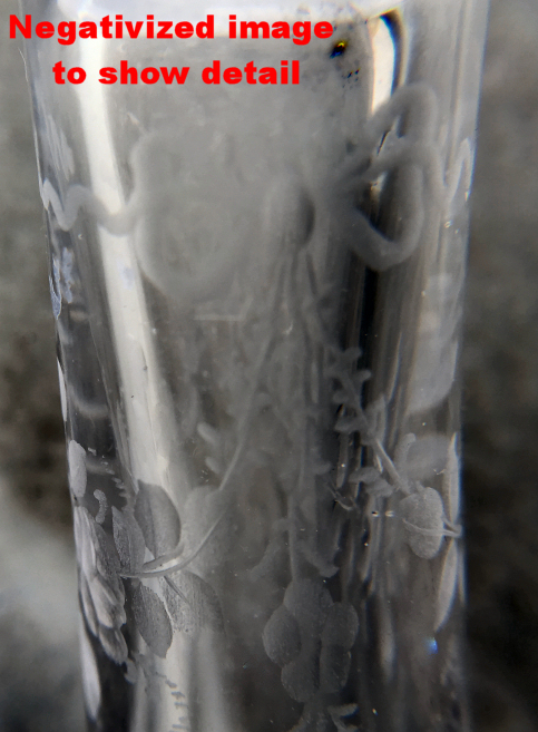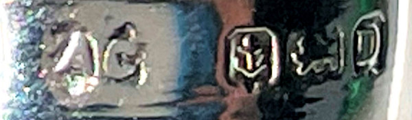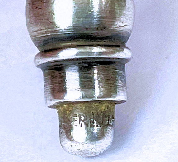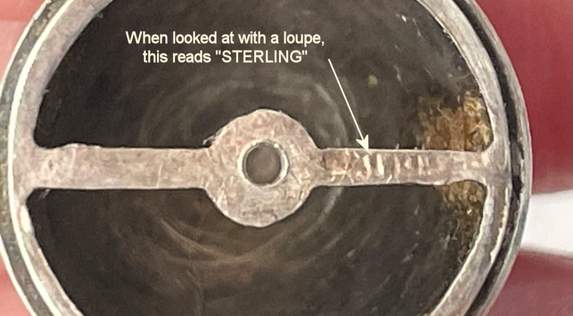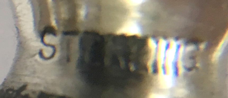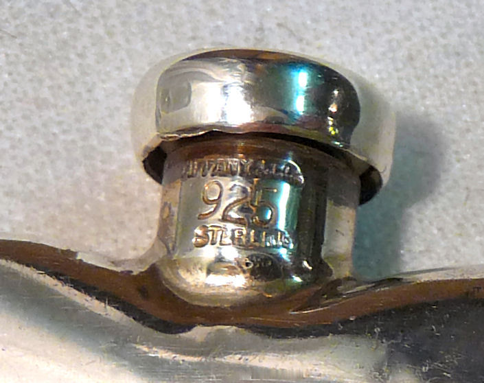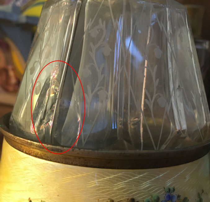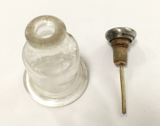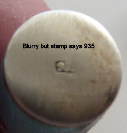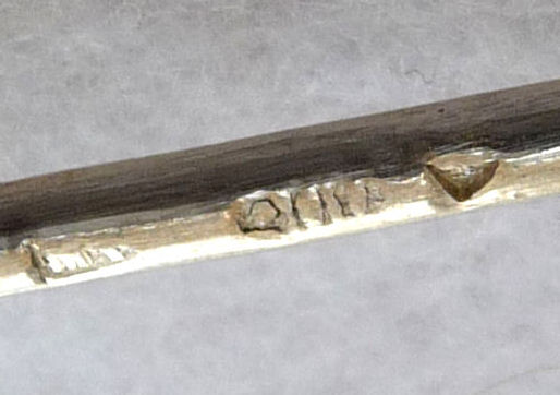 This adorable diminutive little perfume bottle will make the sweetest addition to your vanity! It is exquisitely etched with delicate flowers around the crystal bottle with a flanged base. The stopper is sterling silver with a soft radiant baby blue enamel guilloche top. The metal dauber is in excellent condition as is the entire bottle. There is one tiny spot of perfume on the inside that I have not tried to remove ... will leave that up to you. The cap is marked "STERLING" and a hallmark that I cannot identify.* This tiny little perfume measures only 1-1/4" high. The base is 7/8" diameter and the cap is about 3/8" diameter. It is a little jewel for sure! *According to Tom from Marks4Antiques, "Because it is so partially visible and practically indistinguishable, my best guess is for the French "crab" assay hallmark. This symbol was used by assayers in non-metropolitan areas of France to confirm the purity of silver. It was rather generic and many items bearing this symbol usually did not have a maker's mark since most were made for others as parts to a larger piece (as in this case). Also, the French are renowned for their glass & crystal production, so this theory makes sense. The only other possibility, in my opinion, is that it was made in Austria. In either case, the safest way to attribute the origin of this item is to call it 'Continental European'. I would date it to around 1890s - 1920s." (Click on pic for more photos.) |