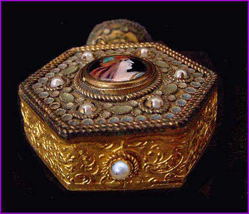 *Shipping and handling included within Continental U.S. Disclaimer: When referring to "jewels" or "gemstones", I am making no guarantees as to whether these are genuine jewels or not. To see photo gallery of all previously SOLD compacts and vanities, click here Perfumes | Dresser Boxes | Hair Receivers | Jewelry | Powder Patters | Vanity Sets | Miscellaneous | Objets de Vertu