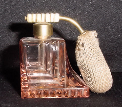 Cute little frosted pink glass perfume with original pink atomizer in excellent condition! Measures 2-1/2" high x 1-1/2" diameter at base. (Click on pic for more photos.) |