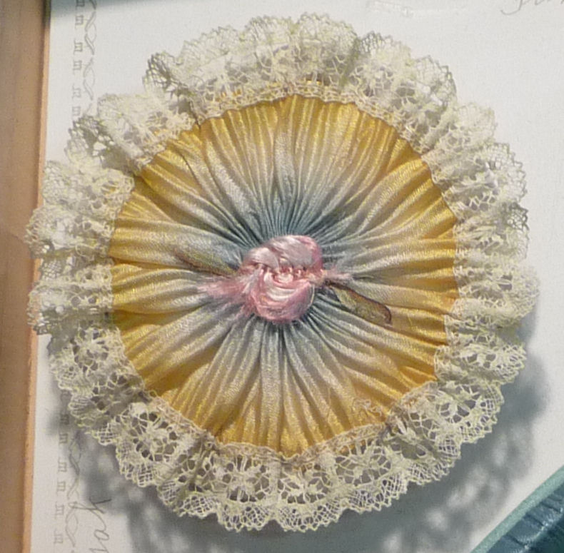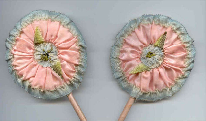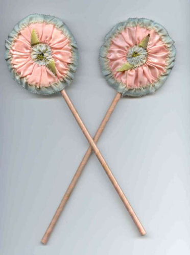 Sweet pink and blue powder patter and mirror set with silk roses and ribbon-wrapped wands. All hand-stitched details and in excellent condition! Great original set. Previously listed for $325 ... now at my cost! (Click on pic for more photos.) |