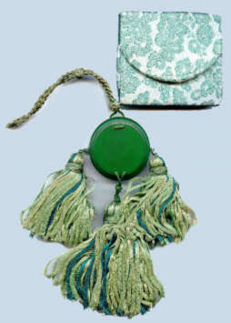 Subject: Little Green Compact! Hi Kathy, It came today and it's about the cutest thing I've ever seen. I got it to go with one of my all-time favorite beaded purses ... which just happened to come from you also ... an awesome beaded peacock purse, with amazing fringe, and a green celluloid frame. Remember? Anyway the little compact perfectly matches the frame ... like they were separated at birth! ;-) Thanks! Can hardly wait for the other two. Sue L