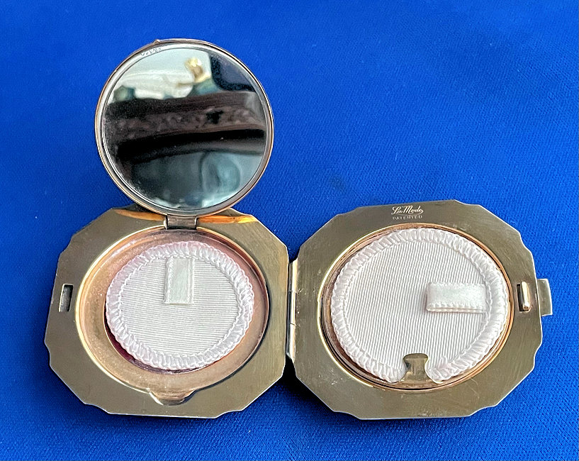 *Shipping and handling included within Continental U.S. Disclaimer: When referring to "jewels" or "gemstones", I am making no guarantees as to whether these are genuine jewels or not. To see photo gallery of all previously SOLD compacts and vanities, click here Perfumes | Dresser Boxes | Hair Receivers | Jewelry | Powder Patters | Vanity Sets | Miscellaneous | Objets de Vertu